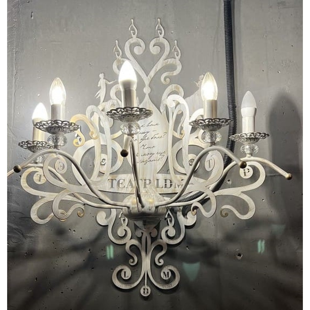 лазерная резка серия Театр ЛДМ сцены из Онегина производства Петрасвет производство люстр №1 в России,РФ S3141-5, 5хЕ14 макс, 60Вт, стиль - классика свечи,