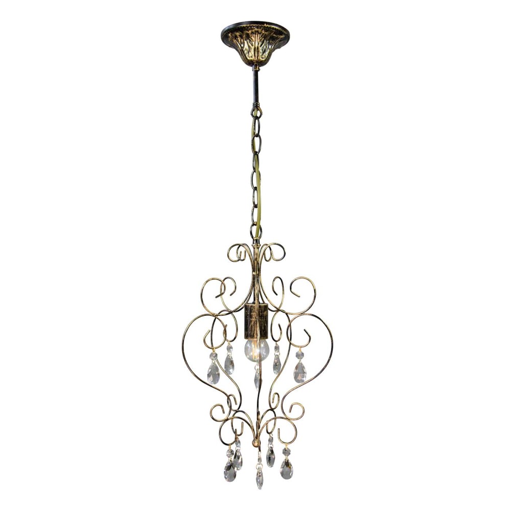 Люстра подвесная на кухню над столом Е27 с хрусталем российского производства ПЕТРАСВЕТ S1145-1, 1хЕ27 макс, 100Вт с хрустальными подвесками, цепь можно укоротить до 1 звена на 17 см, стиль - классический, арматура - металл, цвет светильника- черный с патиной золота, размеры светильника (LxWxH) - 29x29x75, вес - 0,8 кг,
