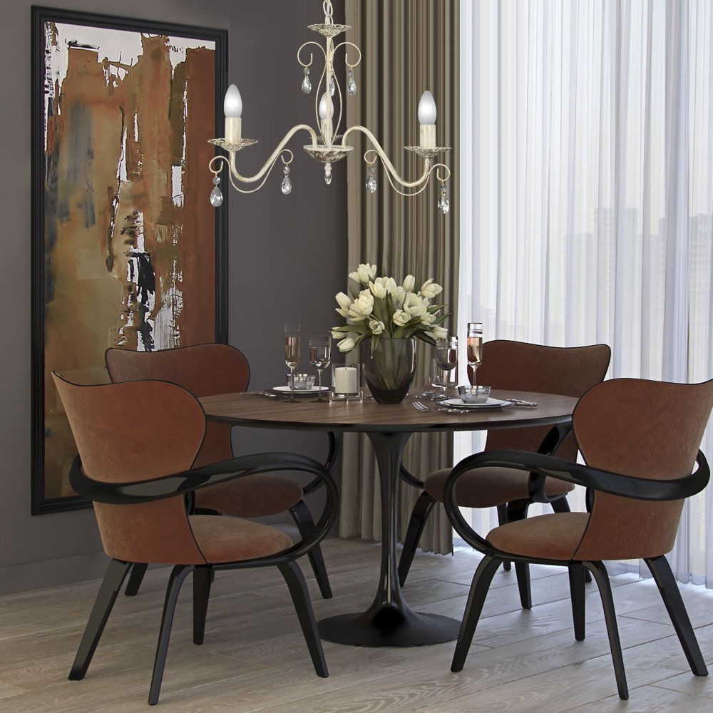 Центральным элементом люстры являются три роскошных хрустальных подвески, которые добавляют ей неповторимый блеск и изысканность. Хрусталь, благодаря своей прозрачности и способности преломлять свет, создает потрясающий эффект мерцания, наполняя помещение мягким и рассеянным светом. Использование хрусталя – это знак качества и внимания к деталям, подчеркивающий премиальность изделия. Хрустальные подвески не только украшают люстру, но и обеспечивают равномерное распределение света по помещению.