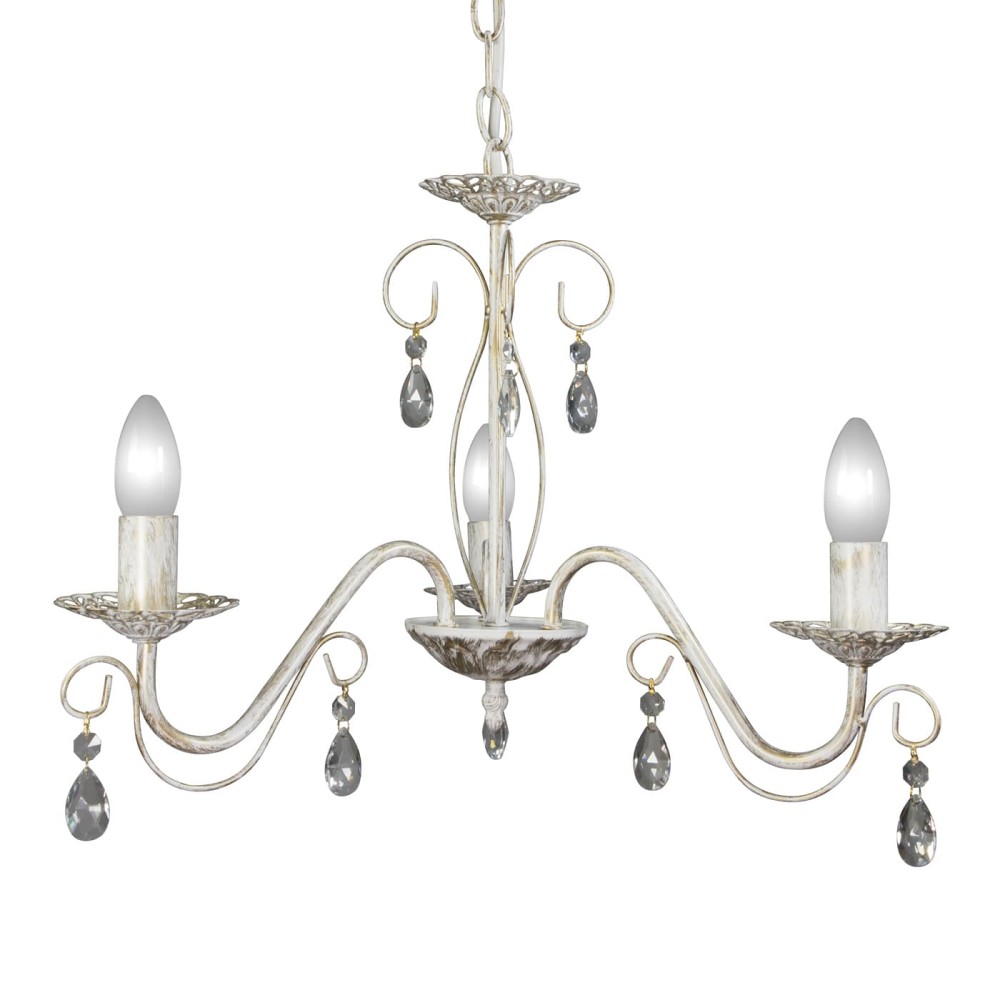 Люстра подвесная 3 лампочки свечи Аврора слоновая кость прованс российского производства ПЕТРАСВЕТ S1155-3 с хрустальными подвесками, цепь можно укоротить до 1 звена на 17 см, стиль - классика свечи, арматура - металл, цвет светильника - бежевый с патиной золота, размеры светильника (LxWxH) - 52x52x68, вес - 2 кг.