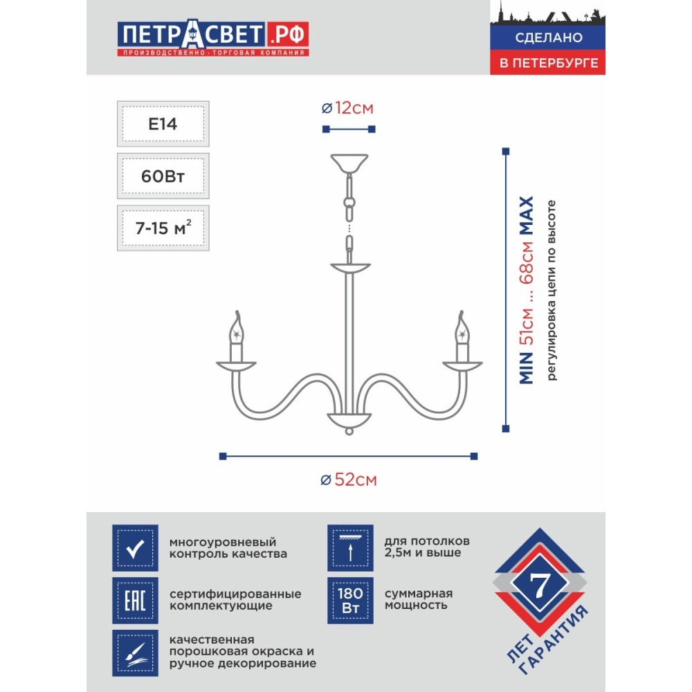 Ширина: 52 см – обеспечивает достаточное пространство для размещения люстры в различных интерьерах.