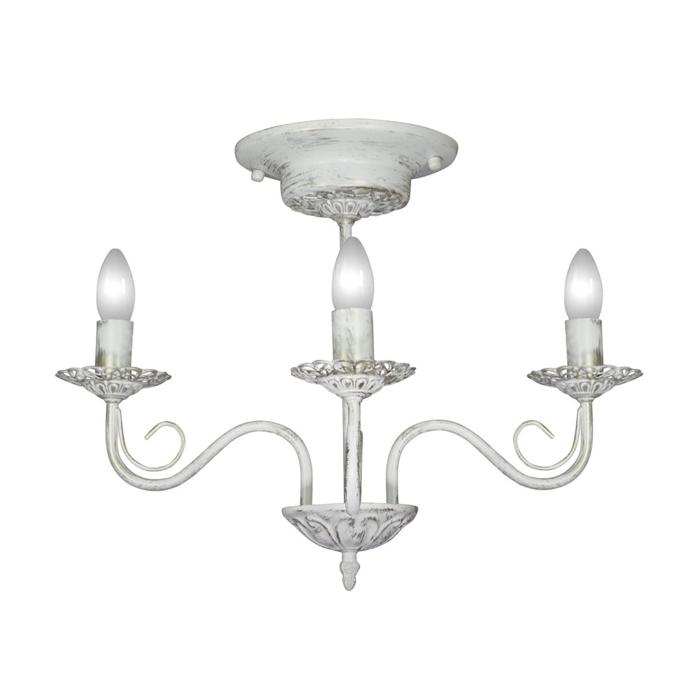 Люстра потолочная 3 лампы трех рожковая классика свечи российского производства ПЕТРАСВЕТ S1157-3, 3хЕ14 макс, 60Вт, стиль - классика свечи, арматура - металл, цвет светильника- белый с патиной золота, размеры светильника (LxWxH) - 48x48x36, вес - 1,4 кг,