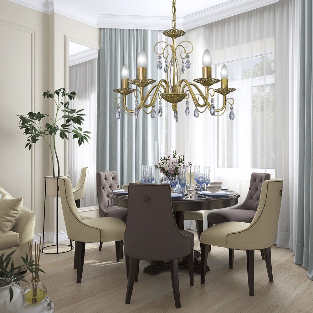 Люстра подвесная Аврора от Петрасвет – воплощение роскоши и элегантности для вашего дома Эта великолепная люстра Аврора от бренда Петрасвет – идеальный выбор для тех, кто ценит классическую красоту, изысканный дизайн и высокое качество исполнения. Эта подвесная люстра станет настоящим центром внимания в любом интерьере, преобразив пространство и создав атмосферу уюта и благополучия. Люстра Аврора сочетает в себе традиции классического стиля с современными элементами, что делает ее универсальной и подходящей для различных помещений. Основные характеристики и преимущества: Роскошный дизайн: Люстра Аврора выполнена в стиле неоклассики, прованс и классики, что позволяет гармонично вписаться в интерьеры в различных стилях. Использование золотистой патины на металле придает светильнику благородный и элегантный вид, подчеркивая его роскошный характер. Хрустальные подвески, расположенные вокруг плафона, создают игру света и тени, добавляя в интерьер глубину и визуальный интерес. Высокое качество исполнения: Люстра изготовлена из прочного и долговечного металла, что гарантирует ее надежность и долгий срок службы. Использование качественных материалов и фурнитуры обеспечивает безопасность и комфорт при эксплуатации. Подсветка с использованием разных типов ламп: Люстра Аврора совместима с различными типами ламп – накаливания, светодиодными и люминисцентными. Это позволяет выбрать оптимальный вариант освещения, исходя из ваших предпочтений и бюджета. Использование светодиодных ламп обеспечит экономию электроэнергии и увеличенный срок службы ламп. Направленный рассеиватель: Рассеиватель направлен вверх, что позволяет эффективно освещать потолок и стены, создавая равномерное и комфортное освещение в помещении. Это особенно актуально для гостиных, столовых и других помещений, где требуется яркое и функциональное освещение. Универсальность и размеры: Ширина основания люстры составляет 12 см, а высота – 51-68 см, что позволяет устанавливать ее на различные подвесные планки и потолочные конструкции. Размеры коробки – 20 x 30 x 25 см, что обеспечивает удобство транспортировки и хранения. Оптимальная площадь освещения: Люстра Аврора идеально подходит для помещений площадью 15-20 квадратных метров. Световой поток в 3750 люмен обеспечивает достаточное освещение и создает комфортную атмосферу. Безопасность и надежность: Люстра оснащена крюком для крепления, обеспечивающим надежное и безопасное монтаж. Срок гарантии – 7 лет, что свидетельствует о высоком качестве продукции и уверенности производителя в своей продукции. Современные технологии: Возможность использования различных типов ламп позволяет адаптировать освещение к вашим потребностям и предпочтениям. Использование светодиодных ламп обеспечивает экономию электроэнергии и увеличенный срок службы ламп. Роскошное оформление: Хрустальные подвески не только создают эффектную игру света, но и добавляют светильнику изысканность и элегантность. Золотистая патина придает светильнику благородный и роскошный вид. Идеальный выбор для: Гостиных, столовых, спален, холлов, прихожих, лестничных пролетов. Преимущества использования люстры: Создание атмосферы уюта и тепла, улучшение цветопередачи, повышение уровня освещенности, украшение интерьера. Технические характерист