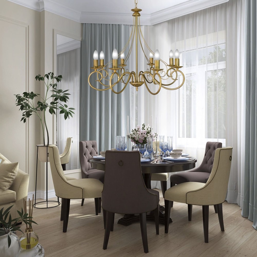 Ослепительная Классика: Большая Подвесная Люстра S1203-8 – Изысканный Акцент для Вашего Интерьера Эта роскошная люстра – воплощение классической элегантности и неповторимого шарма. S1203-8 от бренда Петрасвет – это не просто источник света, это инвестиция в атмосферу роскоши и уюта в вашем доме. Созданная в России, эта люстра станет центральным элементом любой гостиной, столовой, спальни или даже кабинета, подчеркивая статус и вкус владельца. Изысканный Дизайн и Превосходное Качество Люстра S1203-8 поражает своим масштабом и детализацией. Благодаря ширине 83 см и высоте 68-85 см, она станет настоящим акцентом, заполняя пространство своим великолепием. Основным материалом светильника является прочный и долговечный металл, обработанный в технике патинирования золота, что придает ему благородный и винтажный вид. Эта техника позволяет добиться эффекта состаривания, добавляя светильнику неповторимый шарм и ощущение истории. Золотая патина создает игру света и тени, делая люстру особенно привлекательной. Технические Характеристики: Максимальная Производительность и Надежность Количество ламп: 8 штук, что обеспечивает достаточное освещение для помещений площадью от 24 до 35 квадратных метров. Тип цоколя: Е14 – стандартный и широко распространенный тип цоколя, что упрощает замену ламп. Тип ламп: Люстра поддерживает использование различных типов ламп, включая накаливания, светодиодные и люминисцентные. Это дает вам возможность выбрать лампы, которые соответствуют вашим предпочтениям и потребностям. Накаливания обеспечат теплый, уютный свет, светодиодные – энергоэффективность и долговечность, а люминисцентные – яркий и чистый свет. Световой поток: 6000 люмен – обеспечивает достаточное освещение для комфортного пребывания в помещении. Напряжение: 220 В – стандартное напряжение для бытовых электроприборов. Направление рассеивателя: Вверх – обеспечивает равномерное распределение света по всему помещению. Тип монтажа: Подвесной – позволяет установить люстру на любой высоте. Крепление: Крюк – обеспечивает надежное крепление люстры к потолку. Преимущества Люстры S1203-8: Роскошный дизайн: Стиль неоклассика, прованс и классика идеально впишется в интерьер в любом стиле. Высокое качество: Российское производство, прочный металл, долговечность. Большой световой поток: 6000 люмен – оптимальное освещение для помещений среднего размера. Универсальность: Поддерживает различные типы ламп. Гарантия: 7 лет – подтверждает качество и надежность продукции. Размеры: Ширина 83 см, высота 68-85 см – создает впечатляющий эффект. Удобство установки: Тип монтажа – подвесной, крепление – крюк. Комплектация: Люстра, паспорт – все необходимое для установки и эксплуатации. Идеальный Выбор для Вашего Интерьера Люстра S1203-8 – это не просто светильник, это предмет интерьера, который добавит вашему дому изысканности и элегантности. Она прекрасно подойдет для: Гостиной: Создаст атмосферу роскоши и уюта, станет центром внимания. Столовой: Подчеркнет статус и вкус, обеспечит комфортное освещение для приема пищи. Спальни: Создаст романтическую и расслабляющую атмосферу. Кабинета: Подчеркнет статус и деловой стиль. Прихожей: Сделает первое впечатление о вашем доме более запоминающимся. Размеры Коробки: H: 18 см, L: 56 см, W: 56 см – удобство транспортировки и хранения. Петра