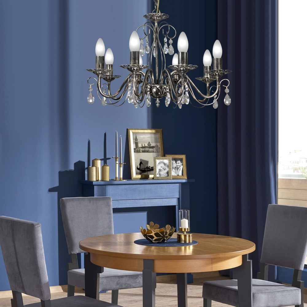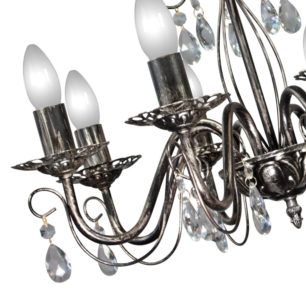 Люстра подвесная Аврора – роскошное освещение для вашего дома (8 ламп, хрусталь, черный с патиной серебра) Эта великолепная люстра Аврора от бренда ПЕТРАСВЕТ – идеальное решение для создания атмосферы элегантности и уюта в вашем интерьере. Представленная в классическом стиле с элементами неоклассики и прованса, она станет ярким акцентом в любой комнате, подчеркивая ее красоту и изысканность. Изготовленная в России, эта люстра сочетает в себе высокое качество, надежность и неповторимый дизайн. Основные характеристики и преимущества: Роскошный дизайн: Люстра Аврора воплощает в себе дух классики и неоклассики. Использование металла, обработанного патиной серебра, придает ей благородный и утонченный вид. Сочетание черного цвета с патиной серебра создает эффектный контраст, который подчеркивает красоту хрустальных подвесок. 8 ламп для яркого освещения: В комплекте поставляется 8 ламп, обеспечивающих достаточное количество света для комфортного освещения. Вы можете выбрать тип ламп, который вам больше подходит: накаливания, светодиодная или люминисцентная. Накаливания обеспечивают теплый, уютный свет, светодиодные – энергоэффективность и долговечность, люминисцентные – яркий и равномерный свет. Хрустальные подвески – символ роскоши: Декоративные хрустальные подвески придают люстре неповторимый шарм и добавляют ей изысканности. Их прозрачность и блеск создают эффектное световое шоу, отражая свет и наполняя комнату мерцающим сиянием. Подвесной монтаж – гибкость в дизайне: Люстра имеет тип монтажа – подвесной, что позволяет вам установить ее на любой высоте, в соответствии с вашими предпочтениями и размерами комнаты. Вы можете разместить ее над обеденным столом, в гостиной, спальне или в других помещениях, где требуется яркое и красивое освещение. Универсальность стиля: Благодаря своему стилю, люстра Аврора идеально впишется в различные интерьеры: от классических до современных, с элементами ретро или лофта. Она подойдет для создания романтической атмосферы в спальне, для организации торжественного ужина в столовой или для создания уютной обстановки в гостиной. Надежность и долговечность: Люстра изготовлена из высококачественного металла, что гарантирует ее прочность и долговечность. Произведена в России, что подтверждает ее соответствие высоким стандартам качества. Гарантия качества: Производитель предоставляет гарантию на люстру сроком 7 лет, что является подтверждением ее надежности и качества. Технические характеристики: Бренд: ПЕТРАСВЕТ Страна производства: Россия Материал светильника: Металл Цвет светильника: Черный с патиной серебра Тип цоколя: Е14 Модель: S1153 Вид ламп: Накаливания, светодиодная, люминисцентная Количество ламп, шт.: 8 Направление рассеивателя: Вверх Напряжение: 220 Площадь освещения, м2: 24-35 Световой поток (лм): 6000 Тип крепления: Крюк Ширина основания, см: 12 Размер коробки H: 20 см Размер коробки L: 30 см Размер коробки W: 25 см Гарантия: 7 лет Материал плафона: Нет (отсутствует плафон) Почему стоит выбрать люстру Аврора от ПЕТРАСВЕТ? Исключительное качество: Мы используем только высококачественные материалы и современное оборудование для производства наших светильников. Уникальный дизайн: Наши дизайнеры создают оригинальные и стильные светильники, которые подчеркнут индивидуальность вашего и