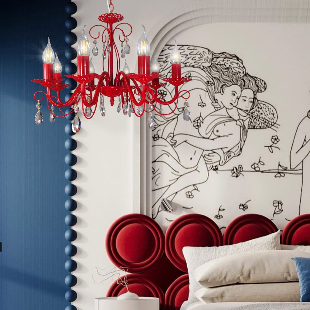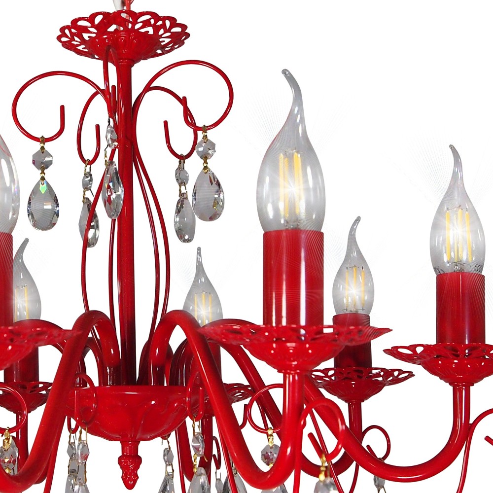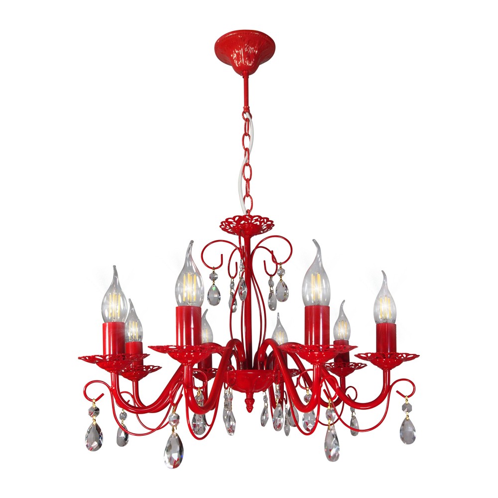 Люстра красная подвесная 8 ламп хрусталь Аврора S1242-8