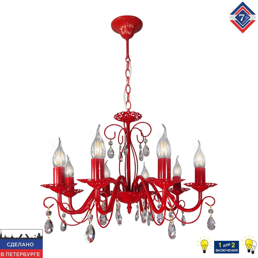 Технические характеристики Люстра красная подвесная 8 ламп хрусталь Аврора S1242-8