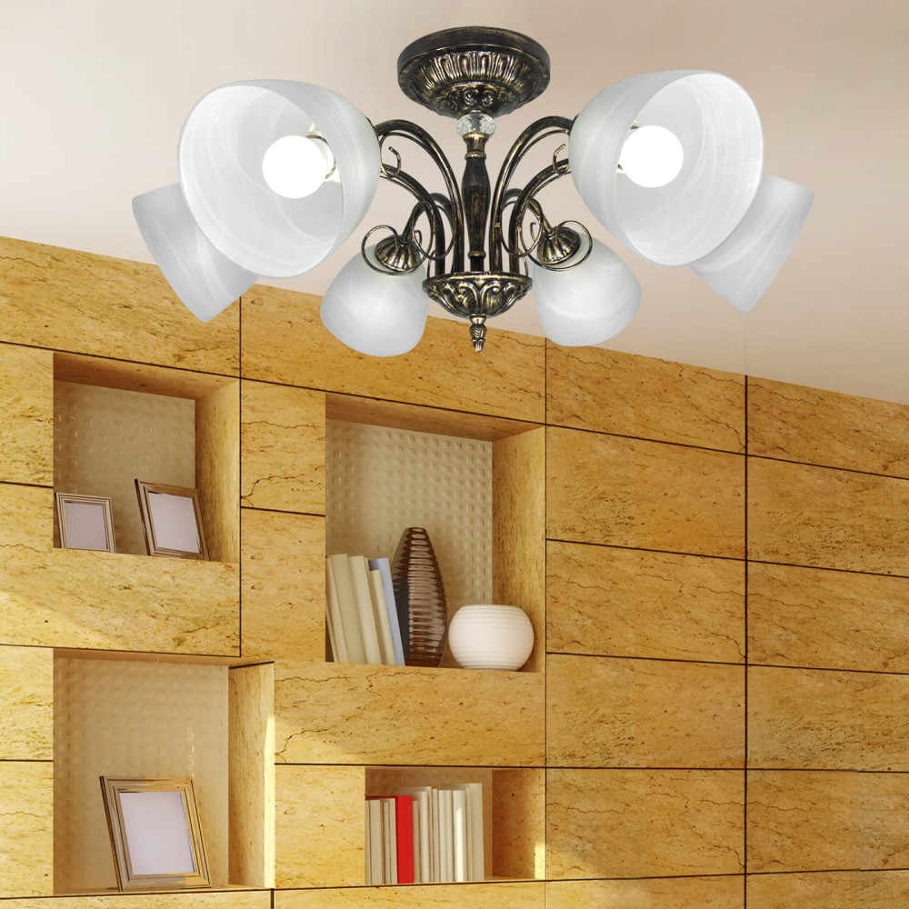Люстра потолочная 6 плафонов S2246-6 – Изысканный Классический Осветитель для Вашего ДомаЭта роскошная потолочная люстра – идеальное решение для создания атмосферы уюта, элегантности и изысканности в любом интерьере. Люстра S2246-6 от бренда Петрасвет, произведенная в России, станет настоящим украшением вашего дома, преображая пространство и добавляя ему неповторимый шарм. Благодаря сочетанию классического стиля, неоклассических элементов и прованс-дизайна, эта люстра идеально впишется в различные стили интерьера – от традиционного до современного, привнося в них нотку ретро-шика и утонченности.Превосходное Освещение и Элегантный ДизайнЛюстра S2246-6 – это не просто источник света, это произведение искусства. Шесть плафонов, выполненных из качественного стекла, гармонично дополняют общий дизайн, создавая мягкое и рассеянное освещение, которое идеально подходит для гостиной, столовой, спальни или другого помещения, где вы хотите создать расслабляющую и уютную атмосферу. Благодаря направленности светильника вниз, свет фокусируется на зоне, обеспечивая комфортное и приятное освещение.Материалы и КачествоЛюстра изготовлена из прочного и долговечного металла, покрытого патиной золота, что придает ей благородный и элегантный вид. Сочетание черного металла с золотой патиной создает эффектный контраст, делая люстру особенно привлекательной. Металлическое основание обеспечивает надежность и долговечность конструкции. Сочетание различных материалов – металла, стекла и хрусталя – демонстрирует высокое качество исполнения и внимание к деталям.Технические ХарактеристикиБренд: ПетрасветСтрана производства: РоссияМатериал светильника: МеталлЦвет светильника: Черный с патиной золотаТип цоколя: E27Модель: S2115Тип ламп: Накаливания, светодиодная, люминисцентная (совместима с любым типом ламп, подходящим для цоколя E27)Количество ламп: 6Световой поток: 8100 люмен – обеспечивает достаточное освещение для помещений площадью 20-30 квадратных метров.Напряжение: 220 ВСрок гарантии: 7 лет – гарантирует надежность и долговечность вашей покупки.Направление рассеивателя: Вниз – обеспечивает комфортное и равномерное освещение.Тип монтажа: Потолоный – простой и быстрый монтаж.Размер коробки: H 30 см, L 32 см, W 31 см – удобство при транспортировке и хранении.Размер основания: 18 см – оптимальная ширина для большинства потолочных конструкций.Декоративные Элементы и Хрустальные ВставкиЛюстра S2246-6 украшена изящными хрустальными вставками, которые добавляют ей роскоши и блеска. Хрусталь красиво преломляет свет, создавая игру бликов и теней, что делает люстру особенно привлекательной. Эти декоративные элементы подчеркивают классический стиль люстры и делают ее настоящим украшением интерьера.Преимущества Люстры S2246-6:Изысканный дизайн: Сочетание классического стиля, неоклассических элементов и прованс-дизайна.Высокое качество материалов: Металл, стекло и хрусталь гарантируют долговечность и надежность.Достаточный световой поток: 8100 люмен обеспечивает комфортное освещение для помещений площадью 20-30 квадратных метров.Широкая совместимость с лампами: Поддерживает различные типы ламп, подходящих для цоколя E27.Длительный срок службы: Гарантия 7 лет.Удобство монтажа: Тип монтажа потолоный.Эстетичный внешний вид: Хрустальные вставки и патина зо