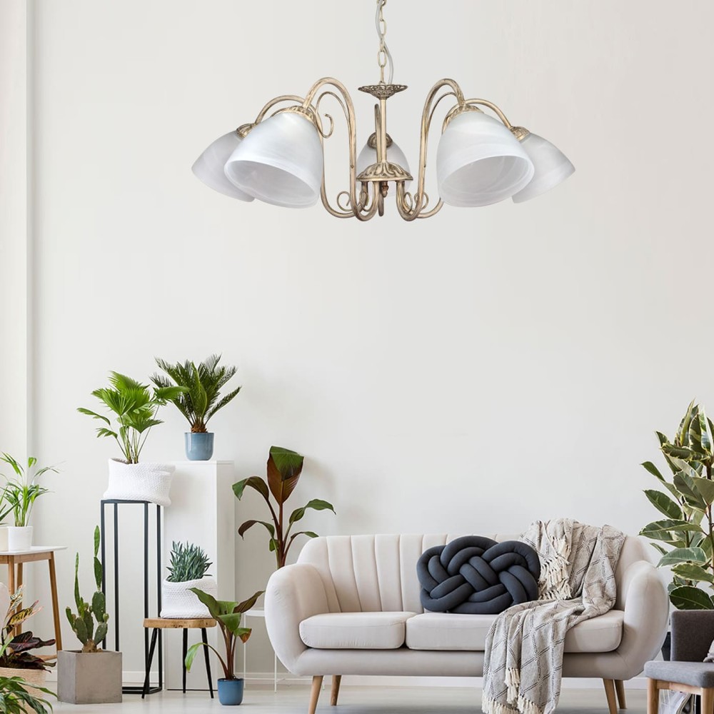 Люстра подвесная 5 плафонов S2499-5 – Элегантное освещение для вашего дома в стиле классики и неоклассики Эта роскошная подвесная люстра S2499-5 от бренда ПЕТРАСВЕТ – идеальное решение для создания атмосферы уюта и изысканности в вашем интерьере. Она сочетает в себе классическую эстетику, современные технологии и высокое качество исполнения, гарантируя долгие годы безупречного освещения. Люстра идеально подойдет для гостиной, столовой, спальни или другого помещения, где требуется акцентное и рассеянное освещение. Дизайн и Материалы: Гармония Классики и Элегантности Люстра S2499-5 выполнена в стилях классики, неоклассики и прованса, что делает ее универсальной и подходящей для различных интерьерных решений. Ее каркас изготовлен из прочного и долговечного металла, покрытого патиной золота, что придает ей благородный и теплый оттенок. Сочетание бежевого цвета с золотой патиной создает ощущение роскоши и уюта, идеально дополняя классические и неоклассические интерьеры. Матовое стекло плафонов не только обеспечивает приятное рассеивание света, но и придает светильнику дополнительную элегантность. Ширина основания люстры составляет 12 см, что делает ее достаточно компактной, но при этом не теряет своей внушительности и привлекательности. Технические характеристики: Надежность и Функциональность Бренд: ПЕТРАСВЕТ – российский производитель, зарекомендовавший себя как поставщик качественного и надежного освещения. Страна производства: Россия – гарантия соответствия стандартам качества и безопасности. Модель: S2135 – специально разработанная модель, сочетающая в себе эстетику и функциональность. Тип монтажа: Подвесной – обеспечивает свободное размещение светильника на необходимой высоте. Тип крепления: Крюк – надежно фиксирует люстру к потолку. Цоколь: Е27 – стандартный цоколь, позволяющий использовать различные типы ламп. Количество ламп: 5 – обеспечивает равномерное освещение и создает многоуровневое освещение помещения. Материал плафона: Стекло – обеспечивает превосходное рассеивание света и придает светильнику элегантный вид. Размеры: Ширина основания: 12 см, Высота: 62 см, Ширина: 70 см. Размер коробки: H: 30 см, L: 32 см, W: 31 см – удобство при транспортировке и хранении. Напряжение: 220В – стандартное напряжение для бытовых электроприборов. Световой поток: 6750 лм – обеспечивает достаточное освещение площади до 17-30 квадратных метров. Тип ламп: Накаливания, светодиодная, люминисцентная – вы можете выбрать лампы, которые вам больше подходят по энергоэффективности и цветовой температуре. Площадь освещения: 17-30 м? – подходит для различных помещений, в зависимости от ваших потребностей. Гарантия: 7 лет – уверенность в качестве и надежности продукта. Преимущества люстры S2499-5: Роскошный дизайн: Сочетание патины золота и бежевого цвета создает атмосферу уюта и элегантности. Универсальность стиля: Подходит для различных интерьеров – классики, неоклассики, прованса. Высокое качество материалов: Использование прочного металла и матового стекла гарантирует долговечность и надежность. Равномерное освещение: 5 плафонов обеспечивают равномерное освещение помещения. Энергоэффективность: Возможность использования различных типов ламп, включая светодиодные лампы, позволяет снизить энергопотребление. Простота установки: Легкая устан