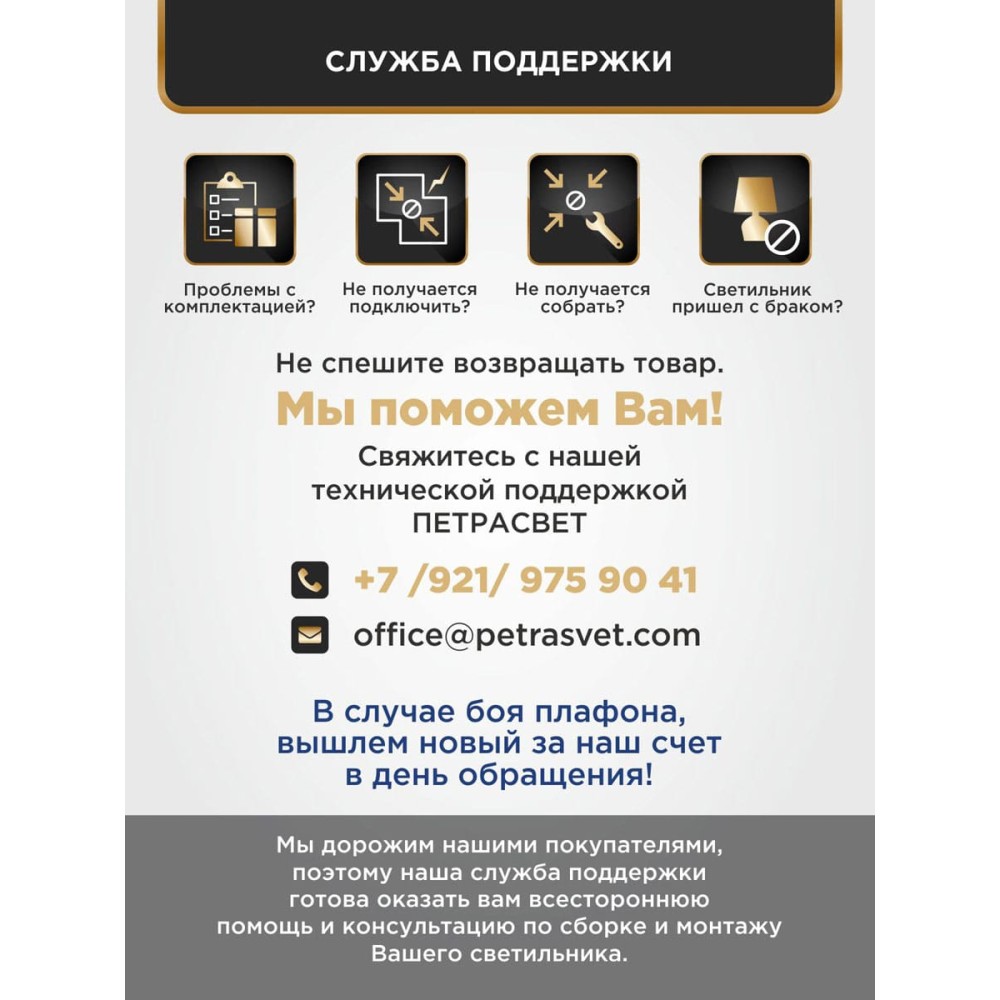 | БрендПЕТРАСВЕТ | Декоративные элементыхрустальные вставки | Комплектациясветильник, паспорт |