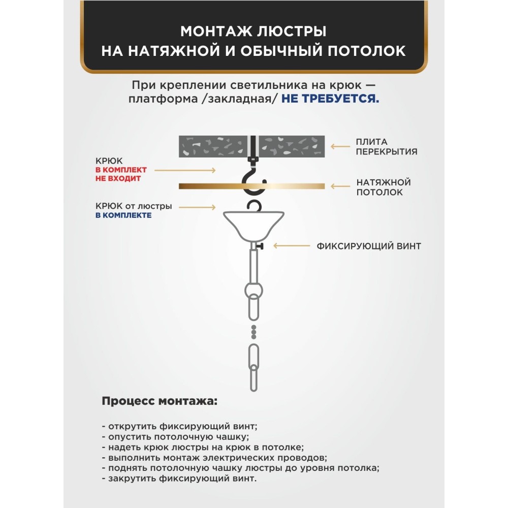 | Тип креплениякрюк | Тип монтажаподвесной | Цвет светильникабелый с патиной золота |