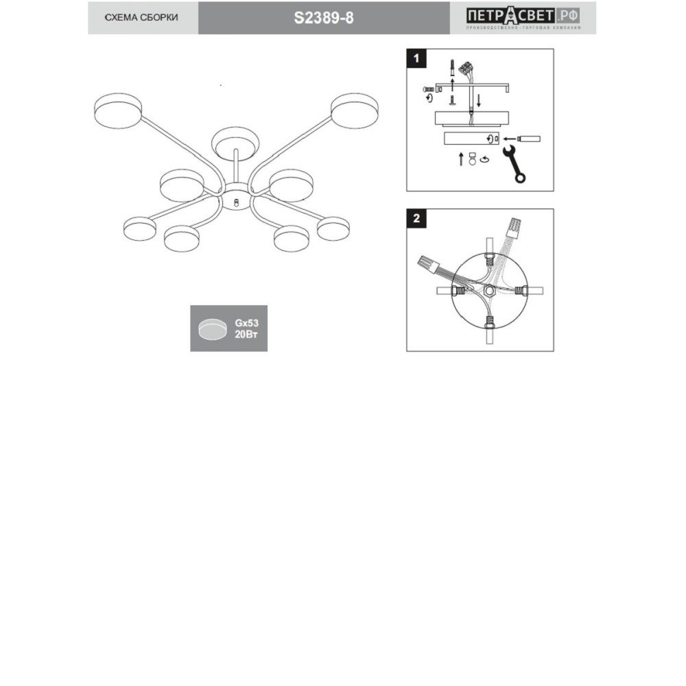 | БрендПЕТРАСВЕТ | Комплектациясветильник, паспорт | Материал плафонанет |