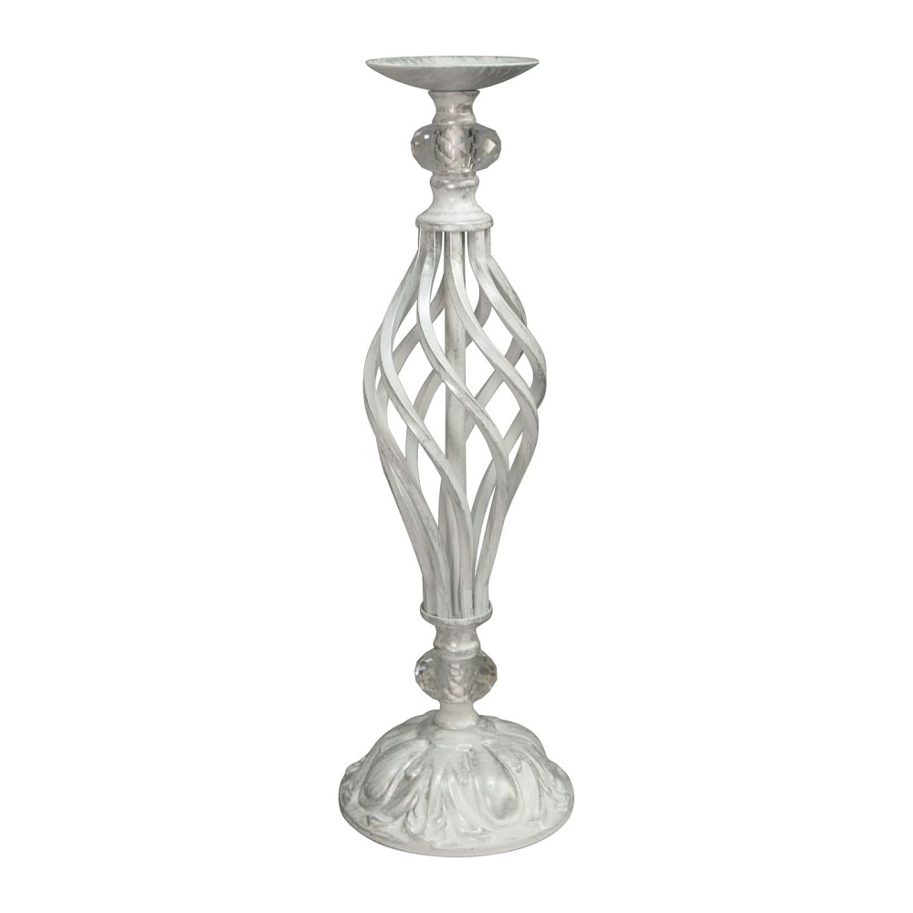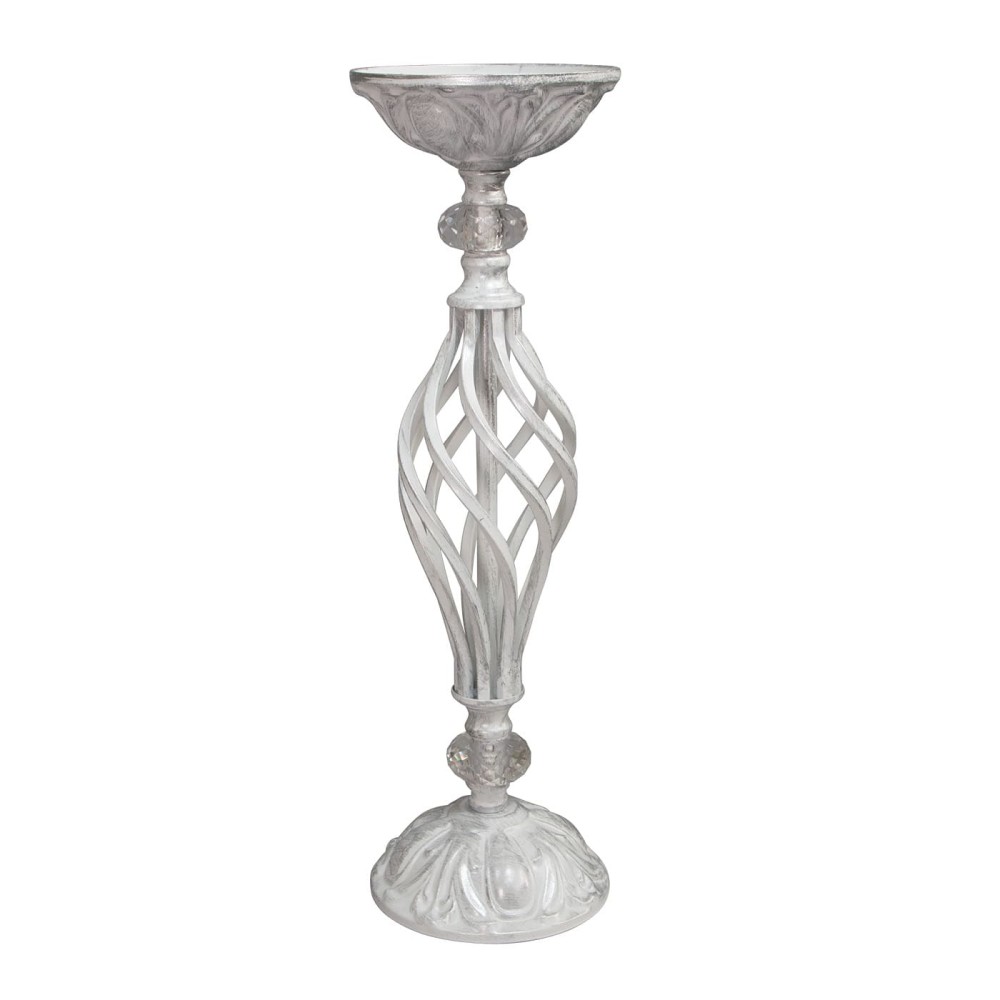 Подсвечник большой белый с патиной серебра S4028